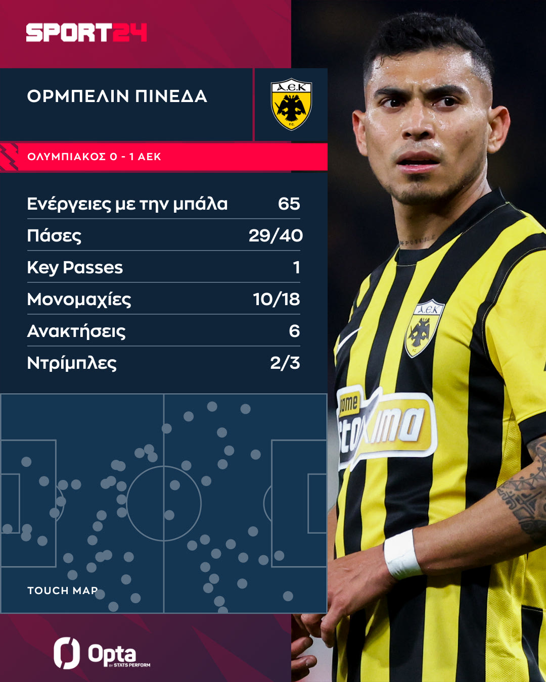 Οι αριθμοί σπάνια “ζαλίζουν” σε ένα ντέρμπι και ιδίως όπως αυτό που παίχθηκε στο “Γ. Καραϊσκάκης”, όμως ο Πινέδα ήταν στις πρώτες θέσεις σε πολλές στατιστικές κατηγορίες των φιλοξενούμενων.