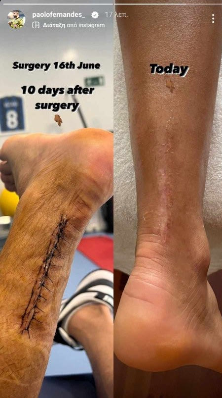Ο Πάολο Φερνάντες θέλησε να μοιραστεί με όλους τους διαδυκτιακούς του φίλους μια εικόνα για το πως ήταν το ποδότι του μετά την επέμβαση και πως είναι τώρα.