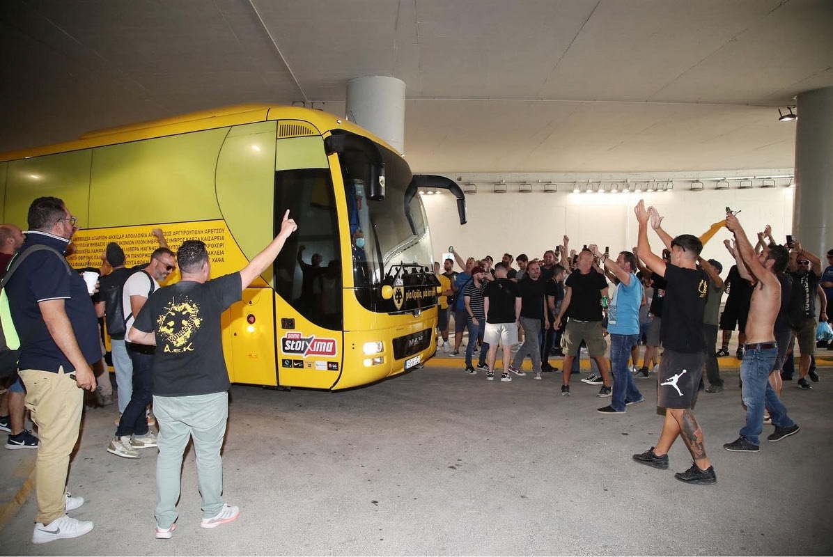 Η θερμή υποδοχή των φίλων της ΑΕΚ στον Αλμέιδα και τους παίκτες του