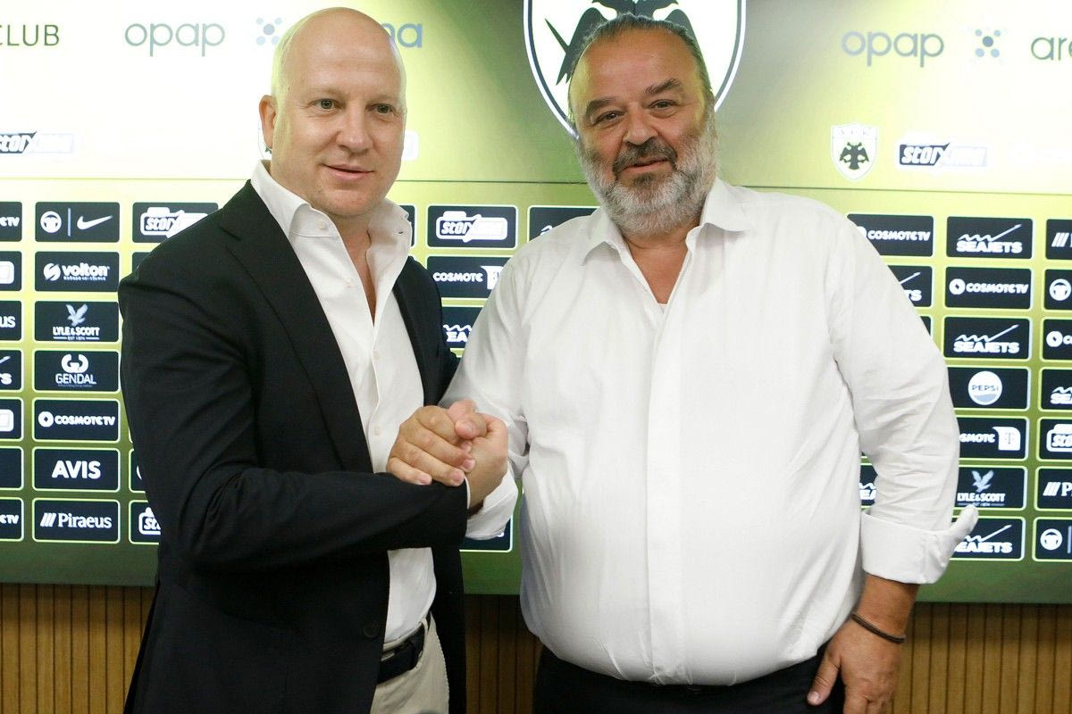 ΑΕΚ: Η χειραψία Ηλιόπουλου – Νίκολιτς στην παρουσίαση του Σέρβου προπονητή