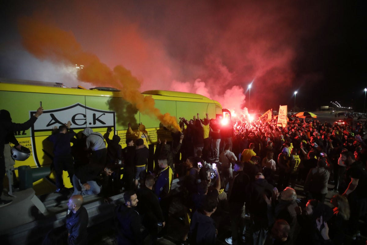ΑΕΚ: Κιτρινόμαυρο “μπλόκο” στα διόδια Αφιδνών και πανικός για το νταμπλ