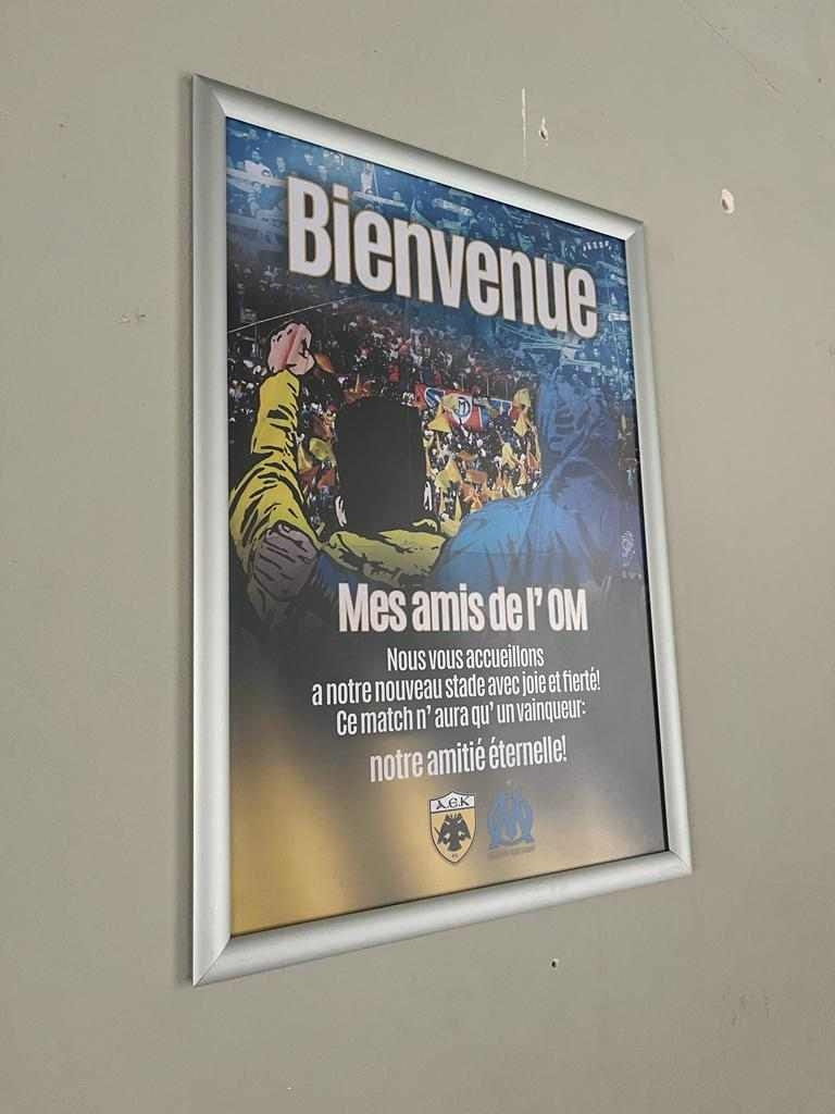 Η ΑΕΚ καλωσόρισε τους φίλους της Μαρσέιγ αλλά και την ομάδα με μηνύματα στα γαλλικά στις εξέδρες και στα αποδυτήρια.