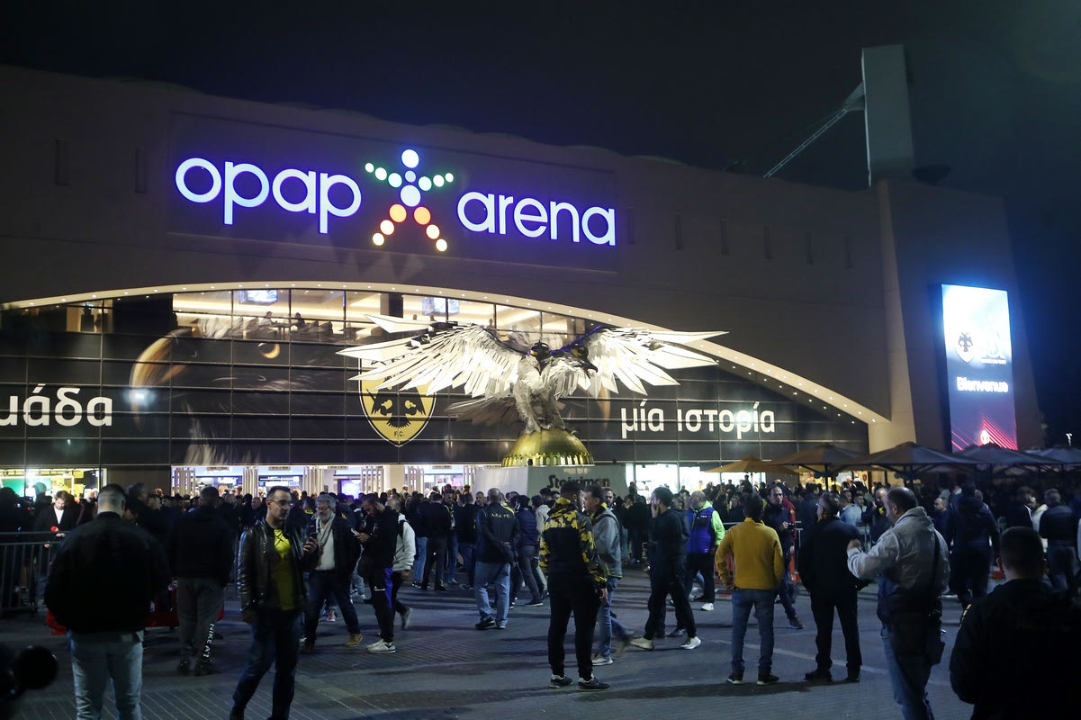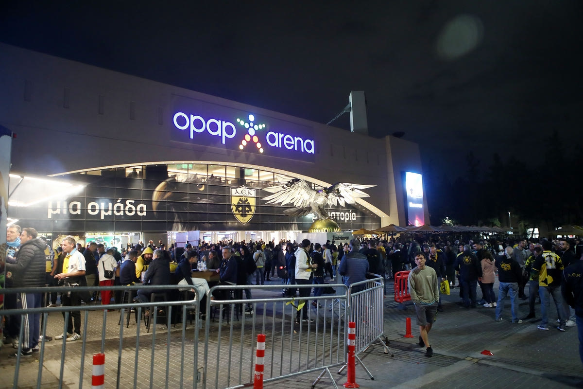Πλήθος κόσμου έξω από την OPAP Arena πριν από το ΑΕΚ - Μαρσέιγ, με τους φίλους των δύο ομάδων να είναι μαζί στη Νέα Φιλαδέλφεια σε ένα άκρως εορταστικό κλίμα.