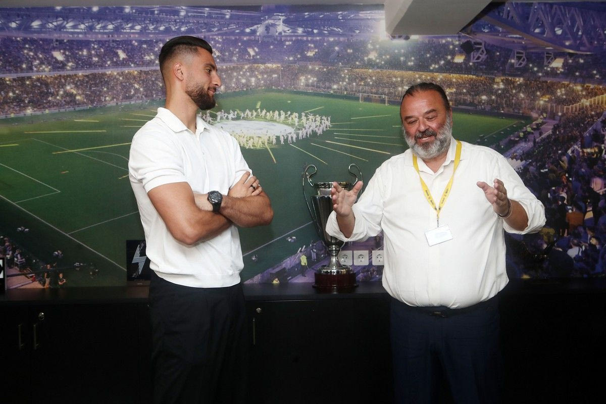 Ο Θωμάς Στρακόσα με τον νέο ιδιοκτήτη και πρόεδρο της ΑΕΚ, Μάριο Ηλιόπουλο Intime Sports