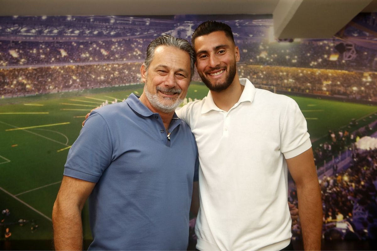 Ο Θωμάς Στρακόσα με τον πατέρα του, Φότο, στις υπογραφές του συμβολαίου του με την ΑΕΚ Intime Sports