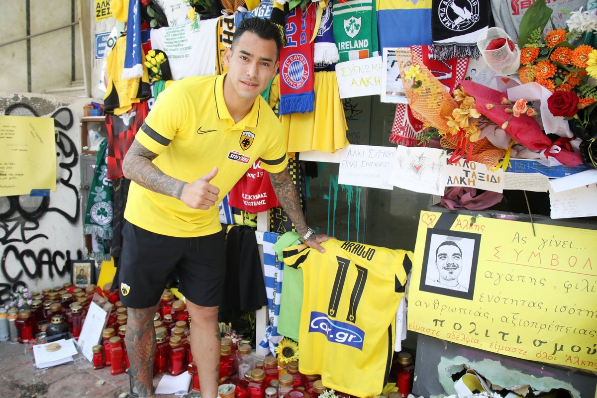 Ο Σέρχιο Αραούχο ενόψει της αναμέτρησης με τον Άρη βρέθηκε στο σημείο της δολοφονίας του Άλκη Καμπανού και άφησε τη φανέλα του στο μνημείο του στη μνήμη του αδικοχαμένου φιλάθλου των κίτρινων.