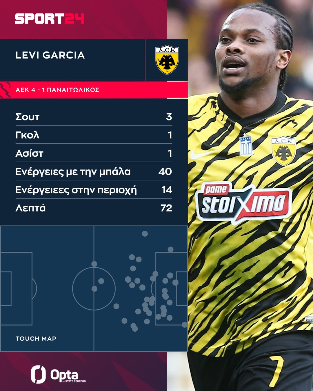 Οι επιδόσεις και οι ενέργειες του Λιβάι Γκαρσία στο ΑΕΚ - Παναιτωλικός SPORT24/STATS PERFORM