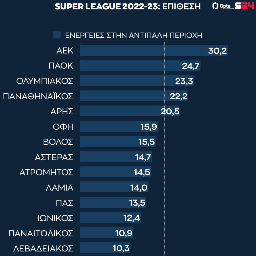 Οι ενέργειες των ομάδων στην αντίπαλη περιοχή στη φετινή Super League