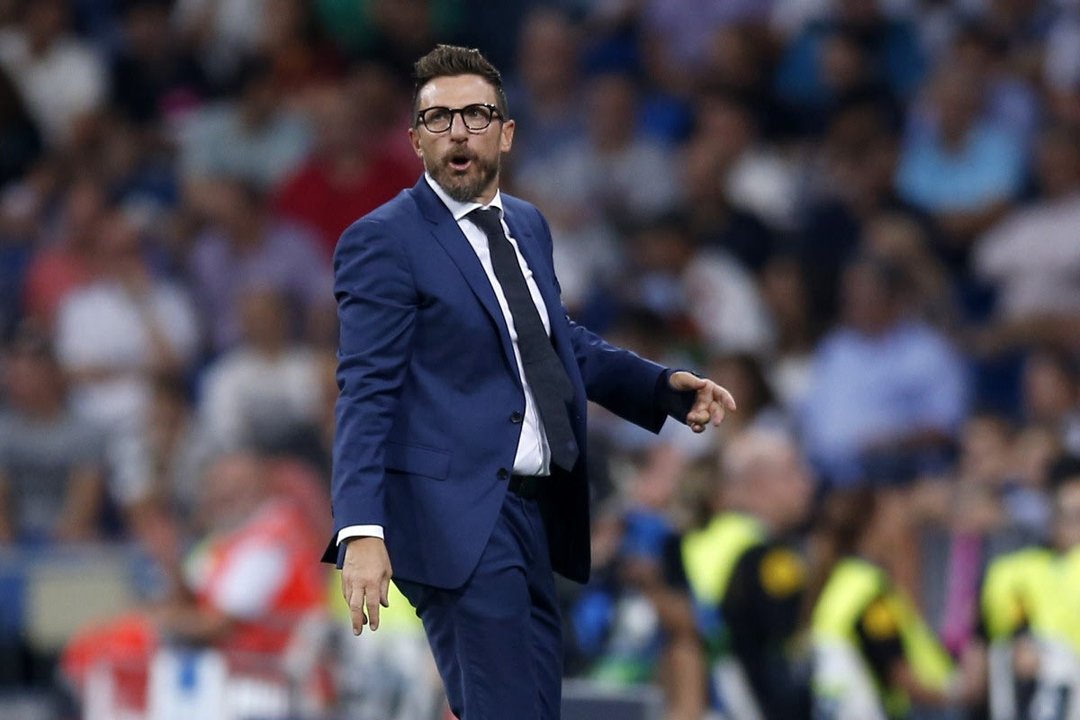 Roma coach Eusebio Di Francesco looks out during a Group G Champions League soccer match between Real Madrid and Roma at the Santiago Bernabeu stadium in Madrid, Spain, Wednesday Sept. 19, 2018. (AP Photo/Manu Fernandez) © 2018 Manu Fernandez / AP Photo