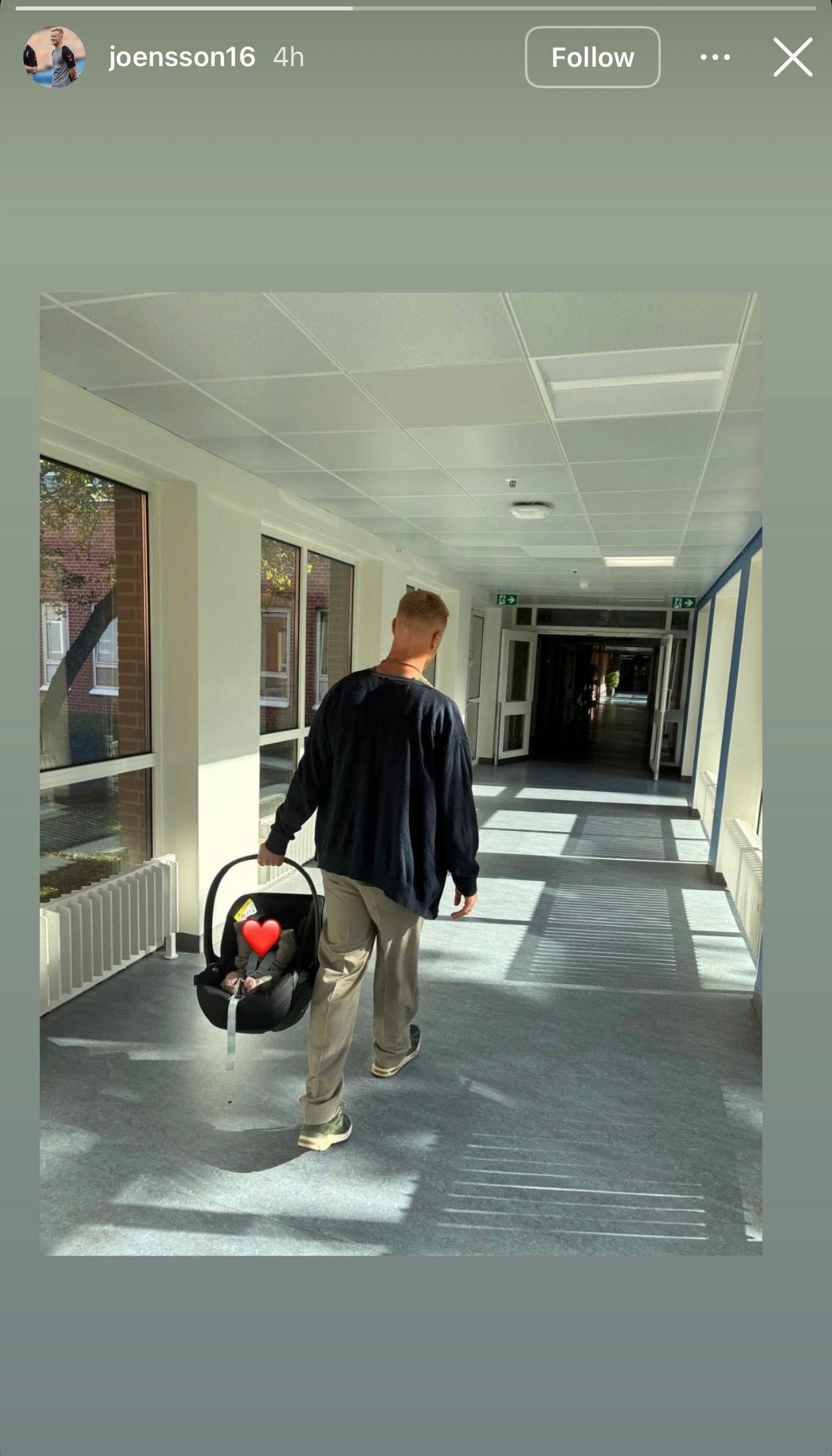 Στο στόρι που ανέβασε, ο Γιόνσον απεικονίζεται να περπατάει στους διαδρόμους του νοσοκομείου κρατώντας το καθισματάκι του μωρού του, στο οποίο έχει τοποθετήσει μια κόκκινη καρδιά, μια τρυφερή λεπτομέρεια που “μιλά” από μόνη της.
