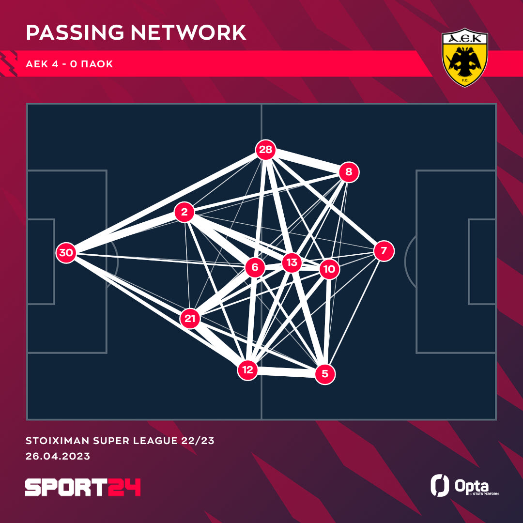 Το δίκτυο μεταβιβάσεων της ΑΕΚ στο ντέρμπι με τον ΠΑΟΚ SPORT24