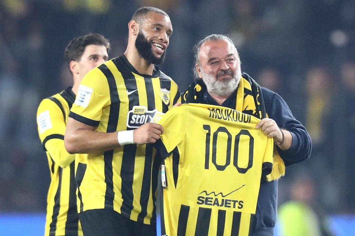 Ο διεθνής Καμερουνέζος αμυντικός στη νίκη (4-1) της Ένωσης επί του Ατρόμητου συμπλήρωσε 100 εμφανίσεις με την Ένωση, με τον Μάριο Ηλιόπουλο να του κάνει δώρο, όπως και στον Πέτρο Μάνταλο, μία αναμνηστική φανέλα με τον αριθμό 100.