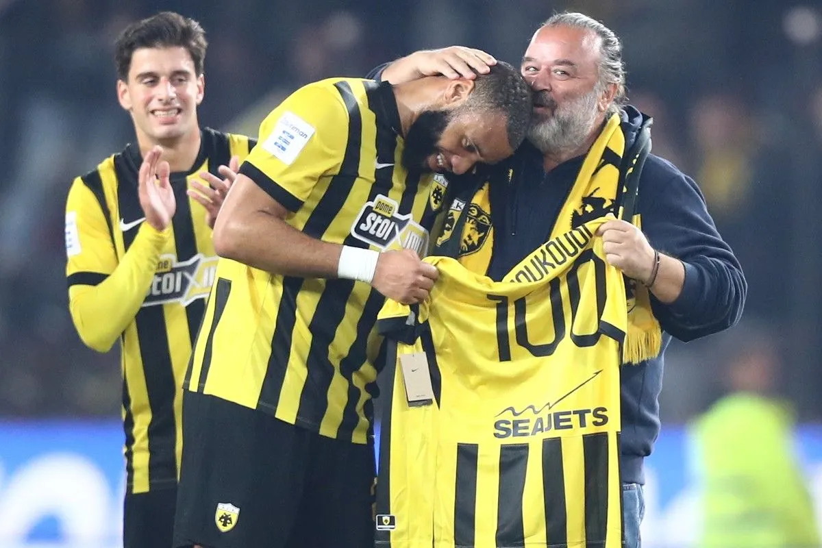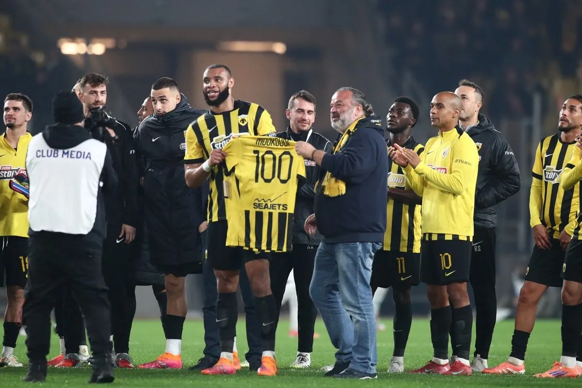 Ο διεθνής Καμερουνέζος αμυντικός στη νίκη (4-1) της Ένωσης επί του Ατρόμητου συμπλήρωσε 100 εμφανίσεις με την Ένωση, με τον Μάριο Ηλιόπουλο να του κάνει δώρο, όπως και στον Πέτρο Μάνταλο, μία αναμνηστική φανέλα με τον αριθμό 100.