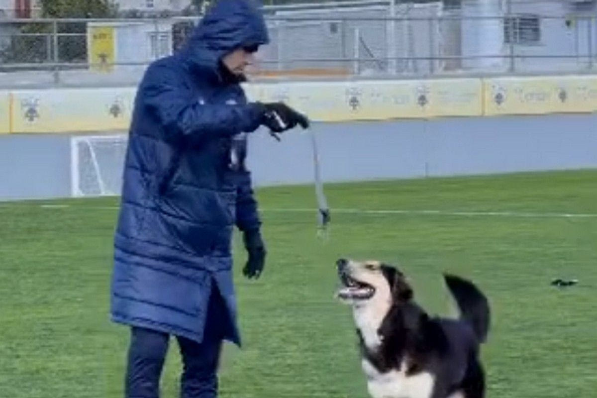 Ο σκύλος που υιοθέτησε ο Ματίας Αλμέιδα έγινε μόνιμος κάτοικος στο προπονητικό κέντρο της ΑΕΚ στα Σπάτα και κατά τη διάρκεια της προπόνηση βρήκε λίγο χρόνο να μπει και να παίξει με τον Αργεντινό τεχνικό της ΑΕΚ.