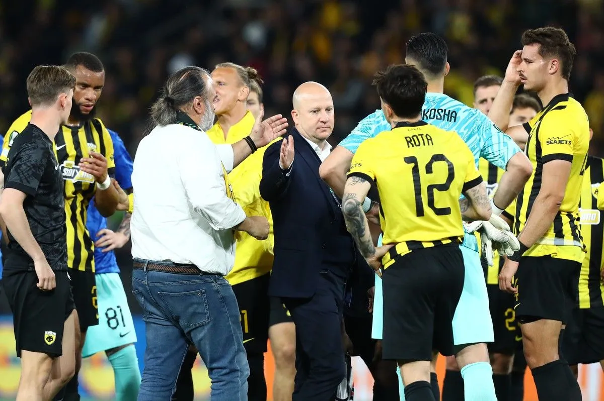 ΑΕΚ: Ο Μάριος Ηλιόπουλος κατέβηκε στον αγωνιστικό χώρο και εμψύχωσε τους παίκτες της Ένωσης μετά το ματς με τη Ράγιο