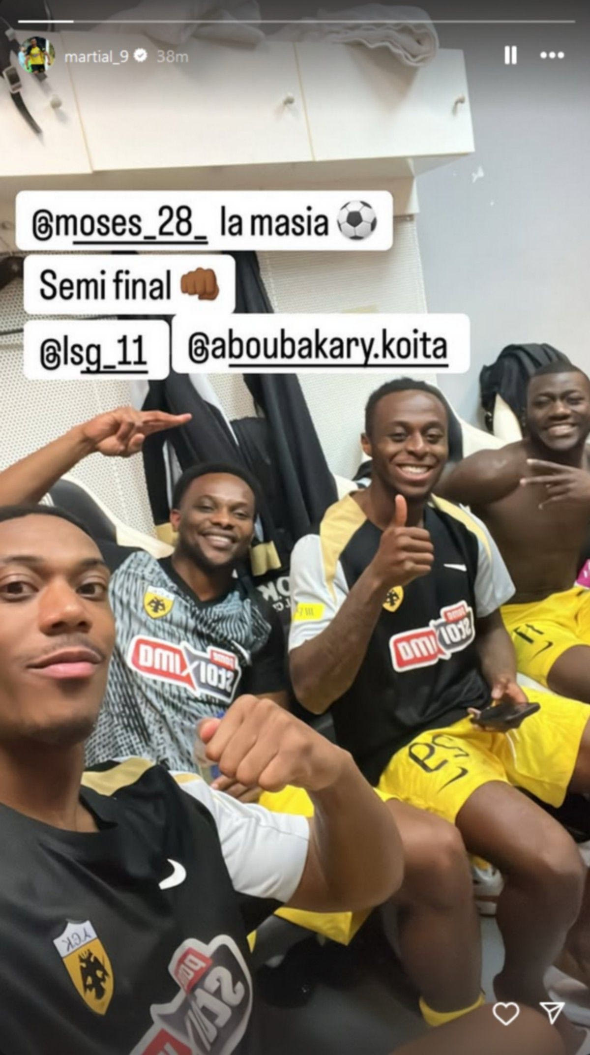 Η ΑΕΚ πήρε σπουδαία πρόκριση στα ημιτελικά του Κυπέλλου Ελλάδας με το 1-1 κόντρα στον ΠΑΟΚ στην Τούμπα, με τον Αντονί Μαρσιάλ να δείχνει τη χαρά του μέσω πανηγυρικής φωτογραφίας που ανέβασε από τα αποδυτήρια μαζί με τρεις συμπαίκτες του.