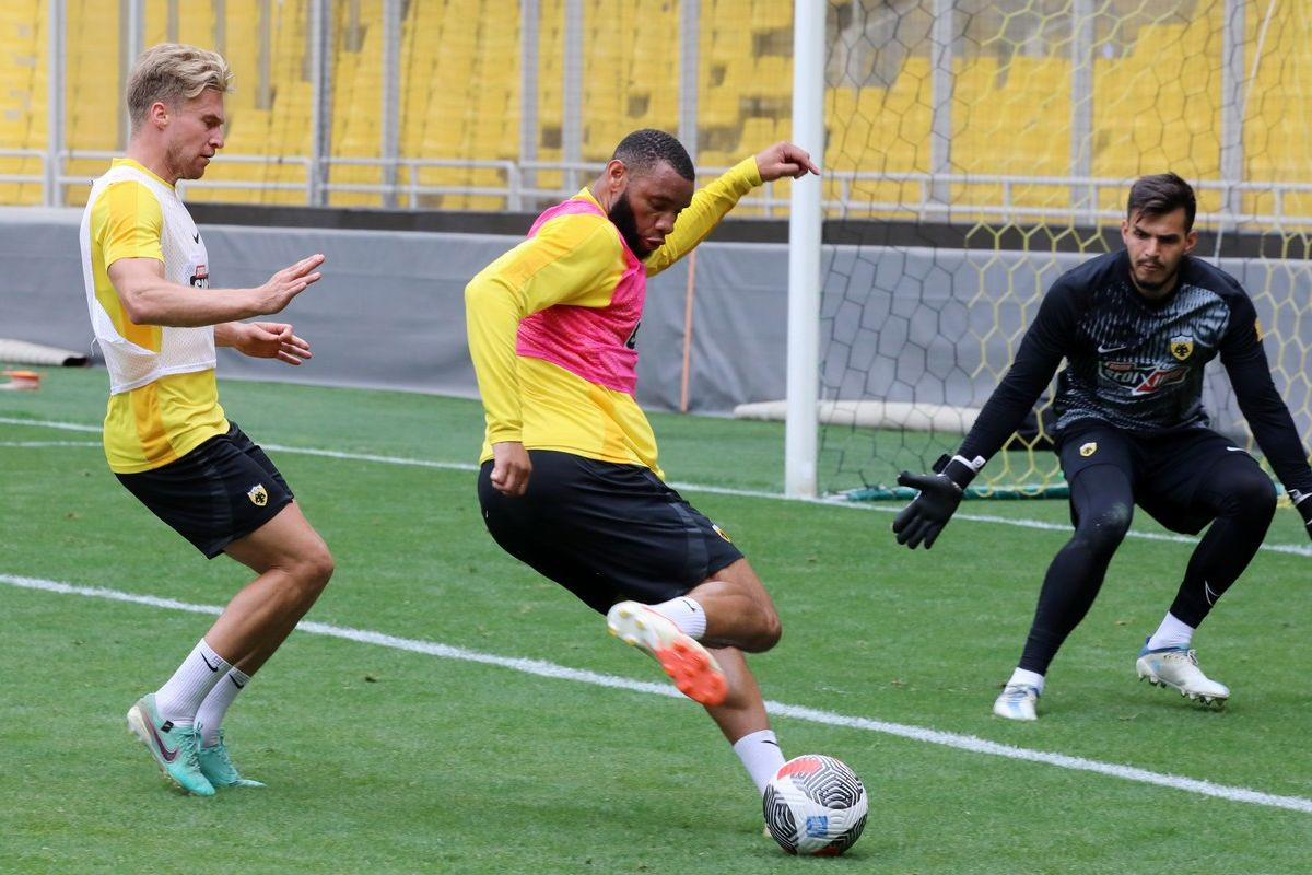 Οι παίκτες της ΑΕΚ προπονήθηκαν στην OPAP Arena και στη συνέχεια γευμάτισαν στο εστιατόριο του γηπέδου "Βυζαντινό". Ο Αρόλντ Μουκουντί συμμετείχε στο κανονικό πρόγραμμα και είναι έτοιμος για το ντέρμπι με τον Ολυμπιακό.