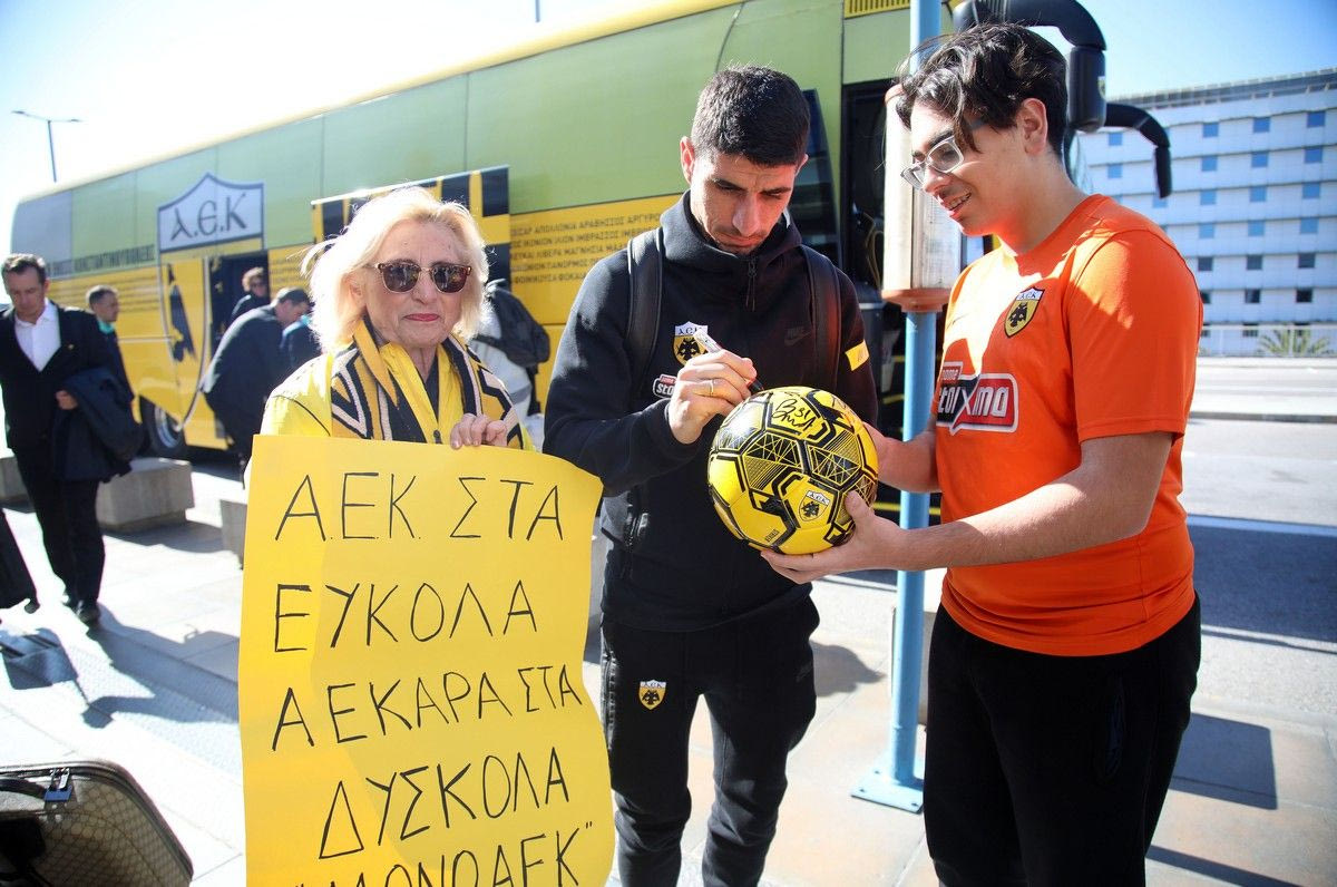 Η αποστολή της ΑΕΚ αναχώρησε το μεσημέρι του Σαββάτου (8/3) για τη Θεσσαλονίκη, εκεί όπου θα αντιμετωπίσει την Κυριακή (8/3) τον Άρη (9/3, 19:00) για την τελευταία αγωνιστική της κανονικής διάρκειας της Stoiximan Super League.