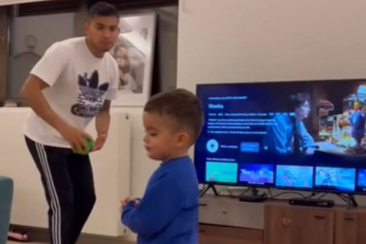 Συγκεκριμένα, ο ποδοσφαιριστής της ΑΕΚ σε video που ανήρτησε η σύντροφός του στο Instagram φαίνεται να μαθαίνει τα μυστικά της στρογγυλής θεάς στον γιο του, μέσα στο σαλόνι του σπιτιού τους.