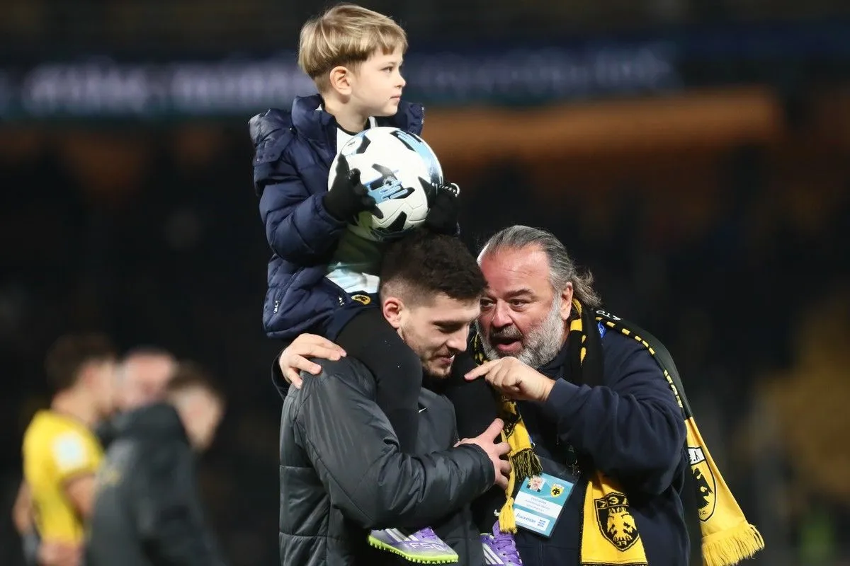 ΑΕΚ: Ο θριαμβευτής Γιόβιτς με τον γιο του στους ώμους και την μπάλα του καρέ