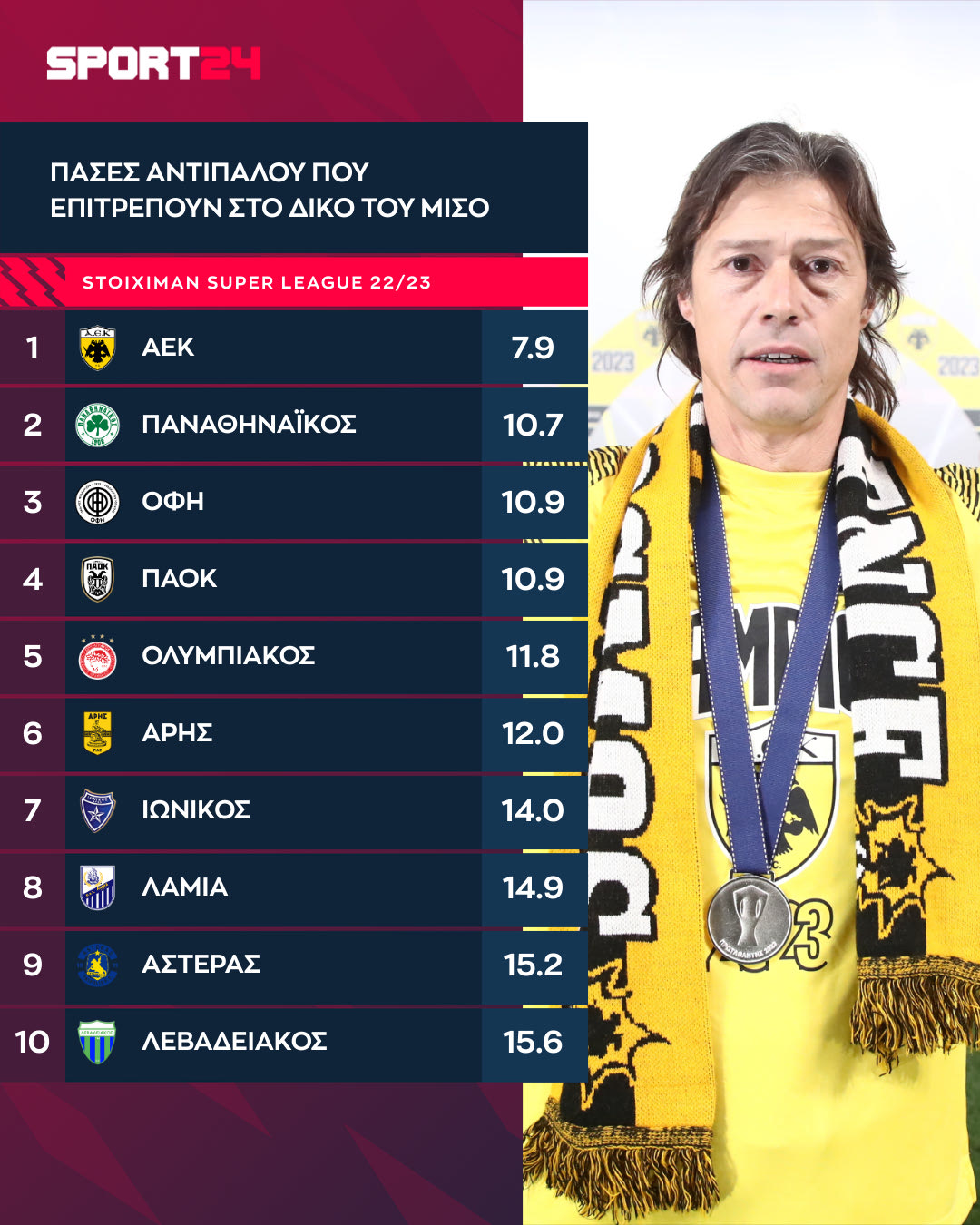Η ΑΕΚ έκανε κάτι εξωφρενικό. Επέτρεψε στους αντιπάλους της να αλλάζουν 10 ή περισσότερες πάσες μόνο 2.3 φορές ανά παιχνίδι.