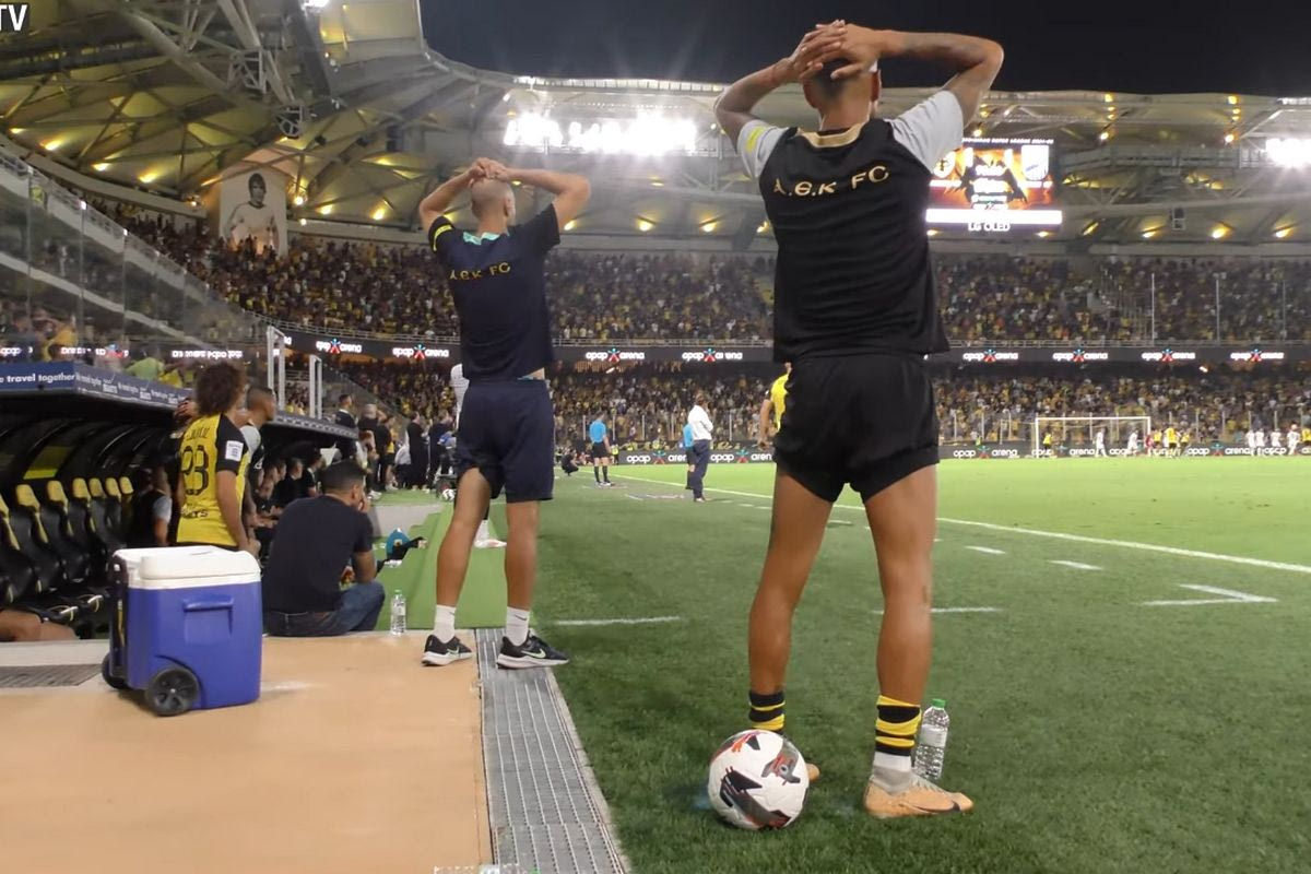 Η ΑΕΚ έμεινε στο 1-1 με τη Λαμία στην OPAP Arena και έχασε δύο πολύτιμους βαθμούς στη μάχη του πρωταθλήματος. Στην παρακάμερα που δημοσίευσε η ΠΑΕ ξεχωρίζουν οι αντιδράσεις του πάγκου στις χαμένες ευκαιρίες των κιτρινόμαυρων, αλλά κι η απογοήτευση των παικτών στο φινάλε του αγώνα.