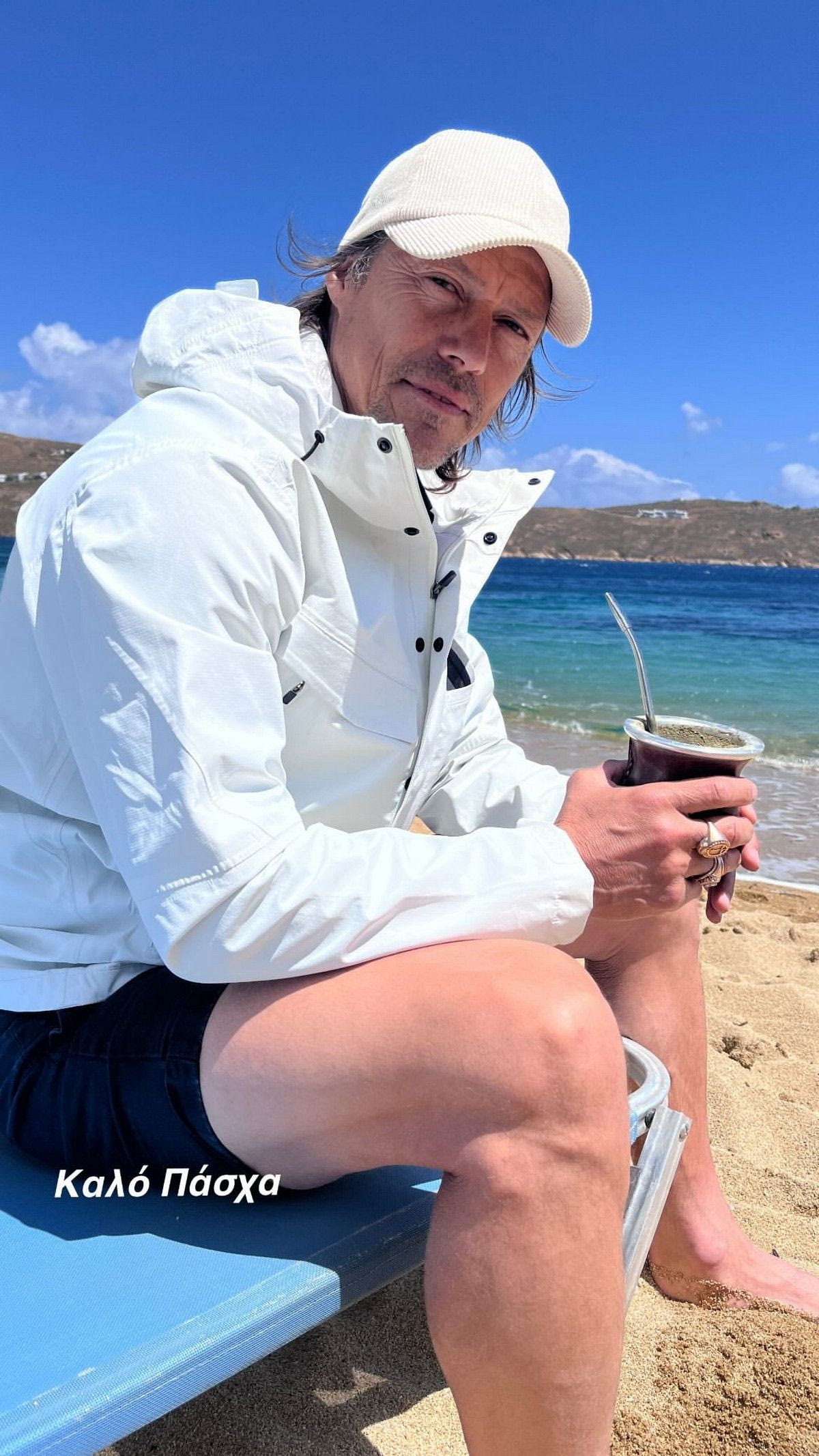 Σε παραλία νησιού με το παραδοσιακό ρόφημα των Λατινοαμερικάνων, μάτε, περνάει ο προπονητής της ΑΕΚ, Ματίας Αλμέιδα την Κυριακή του Πάσχα.