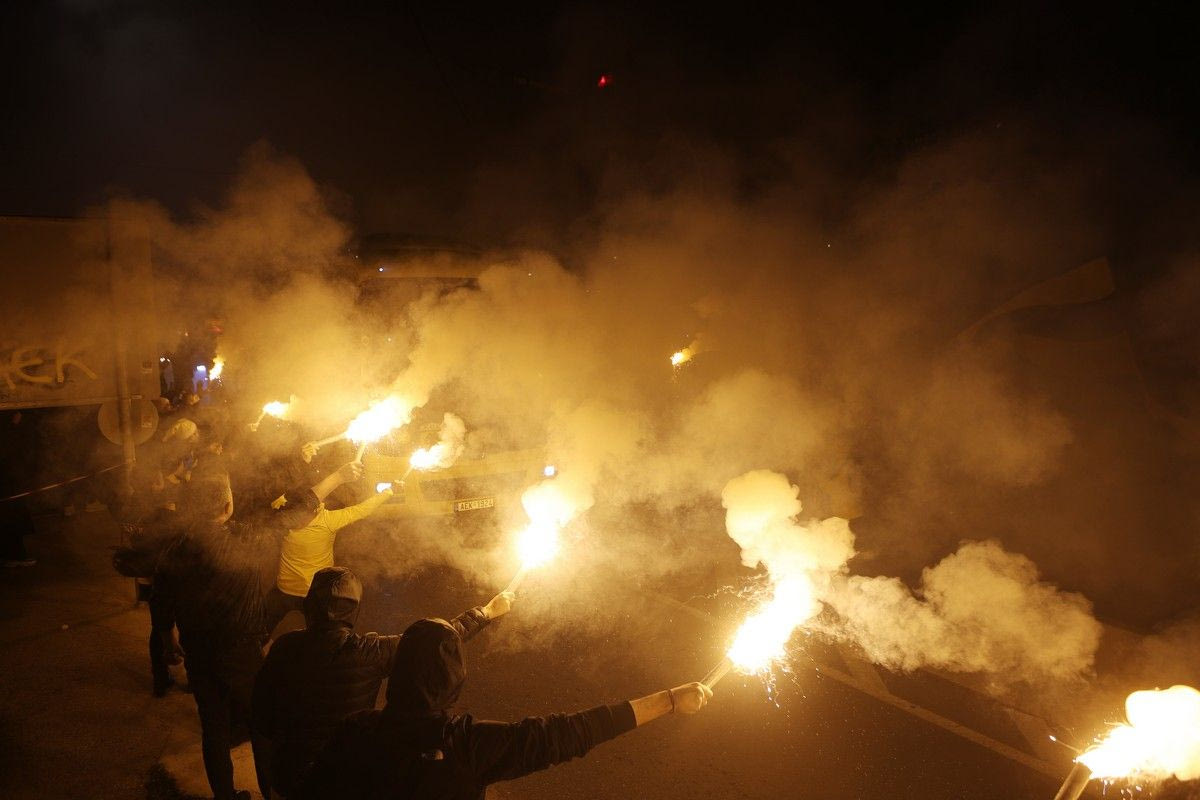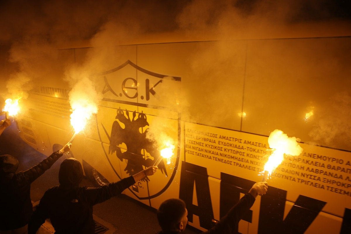 ΑΕΚ: Οι φίλαθλοι της Ένωσης υποδέχθηκαν την αποστολή της ομάδας με πυρσούς