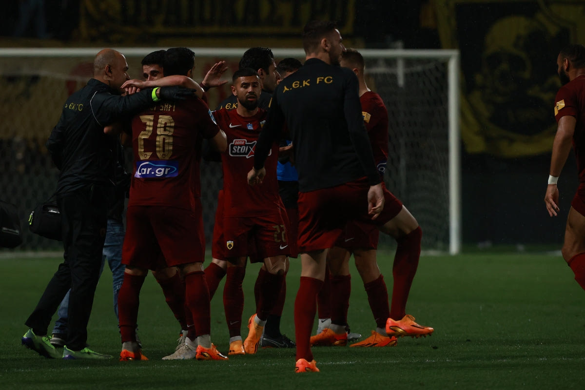 Με τη λήξη του αγώνα στο Κλεάνθης Βικελίδης και παρά τη βροχή που είχε πιάσει στη διάρκεια του αγώνα, οι παίκτες του Ματίας Αλμέιδα έστησαν πάρτι στον αγωνιστικό χώρο, πανηγυρίζοντας με κραυγές και αγκαλιές για το γεγονός πως θα έχουν την ευκαιρία να πάρουν τον τίτλο μέσα στην έδρα τους, χωρίς να εξαρτώνται πλέον από κάποιο άλλο αποτέλεσμα.