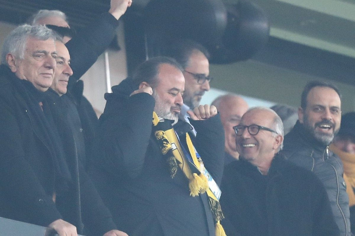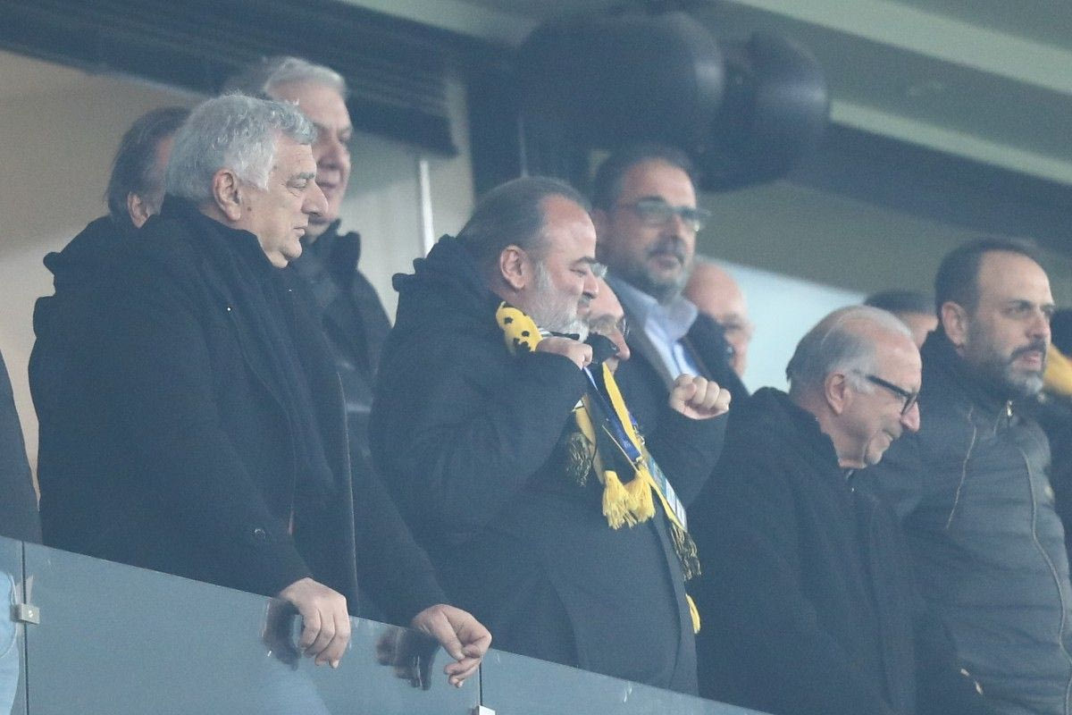 Με ενθουσιασμό και σφιγμένες γροθιές υποδέχθηκε τα τέρματα του Γιόβιτς και ο Μάριος Ηλιόπουλος, με τον φακό να καταγράφει τη χαρά του ιδιοκτήτη της ΠΑΕ ΑΕΚ.
