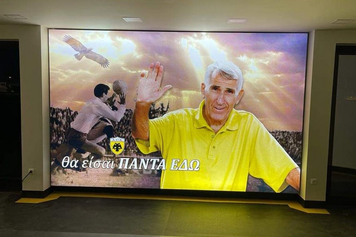 Ολοκληρώνονται και οι τελευταίες λεπτομέρειες στο "Σεραφείδειο", με την ΑΕΚ να δημοσιεύει στα social media φωτογραφικό υλικό, με τη φωτογραφία του Στέλιου Σεραφείδη να κοσμεί την είσοδο του προπονητικού κέντρου με επιγραφή "θα είσαι πάντα εδώ".