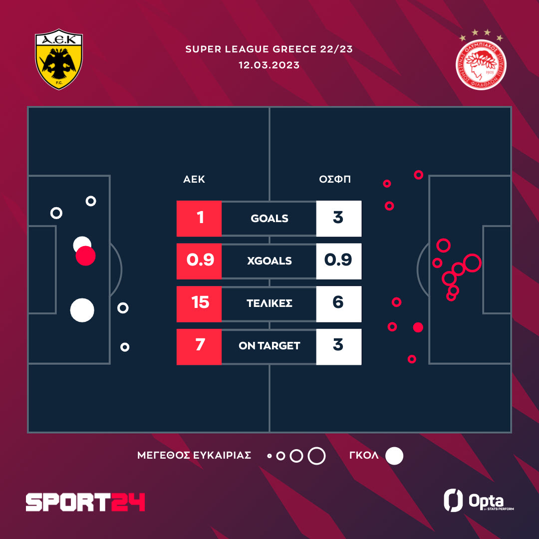 Οι τελικές και τα expected goals στο ΑΕΚ - Ολυμπιακός