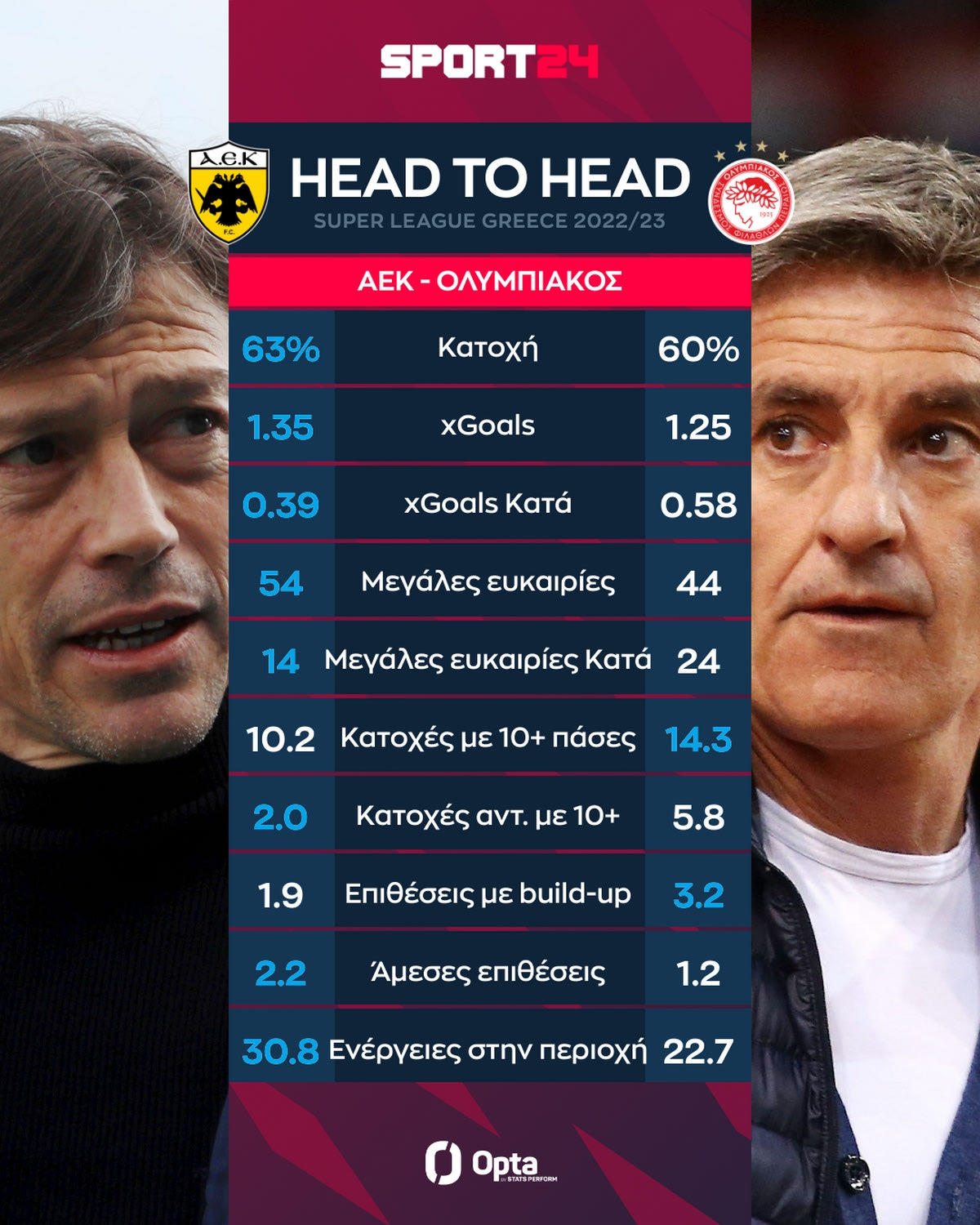 Η απόλυτη σύγκριση ΑΕΚ και Ολυμπιακού SPORT24/OPTA STATS PERFORM