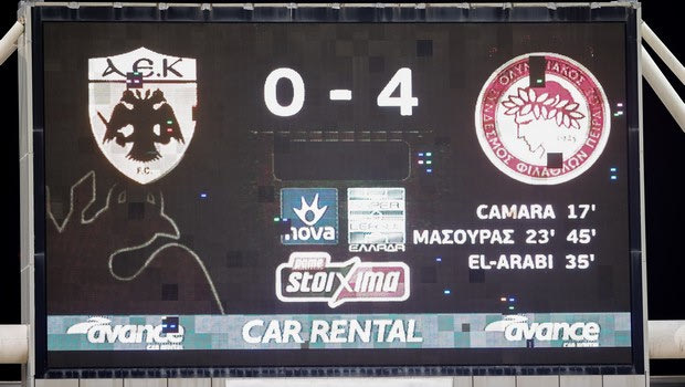 Ο πίνακας του σκορ στο ΟΑΚΑ στην αναμέτρηση της ΑΕΚ με τον Ολυμπιακό Eurokinissi Sports