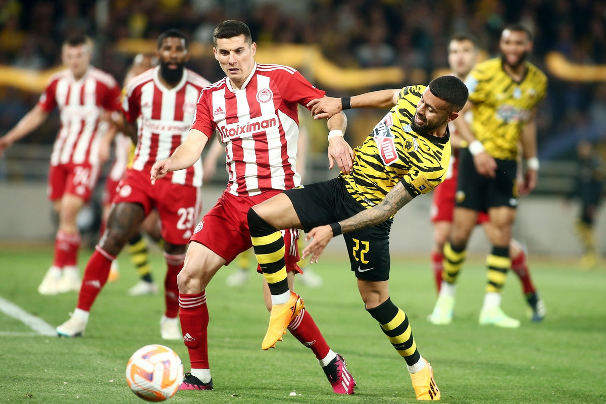 Στιγμιότυπο από τη μονομαχία της ΑΕΚ με τον Ολυμπιακό στην OPAP Arena