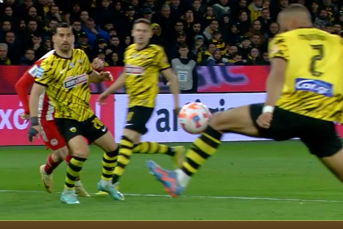 Στο σουτ του Μπιέλ ο Μουκουντί έβαλε το πόδι του και αλλάζοντας πορεία στην μπάλα την έστειλε στα δίχτυα της ΑΕΚ, ανοίγοντας το σκορ για τον Ολυμπιακό.