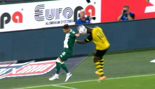 Ο διαιτητής ειδοποιήθηκε από τον VAR και είδε στο μόνιτορ φάση για χέρι του Τσέριν σε εναέρια μονομαχία με τον Πιερό. Αφού τσέκαρε τη φάση στο μόνιτορ, έδειξε την άσπρη βούλα. Ο Άμραμπατ ανέλαβε την εκτέλεση στο 90+4′ και ευστόχησε για το 2-0 της ΑΕΚ κόντρα στον Παναθηναϊκό.