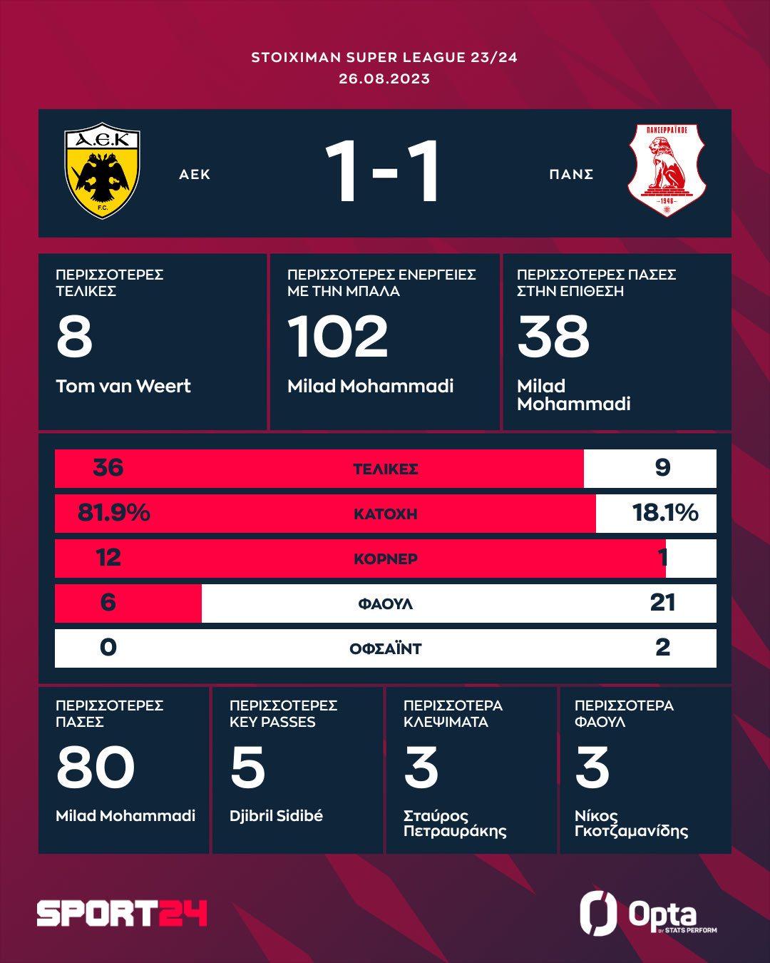 ΑΕΚ – Πανσερραϊκός 1-1: “Μπλόκο” των ψυχωμένων και άριστα στημένων Σερραίων στην Ένωση μέσα στην OPAP Arena