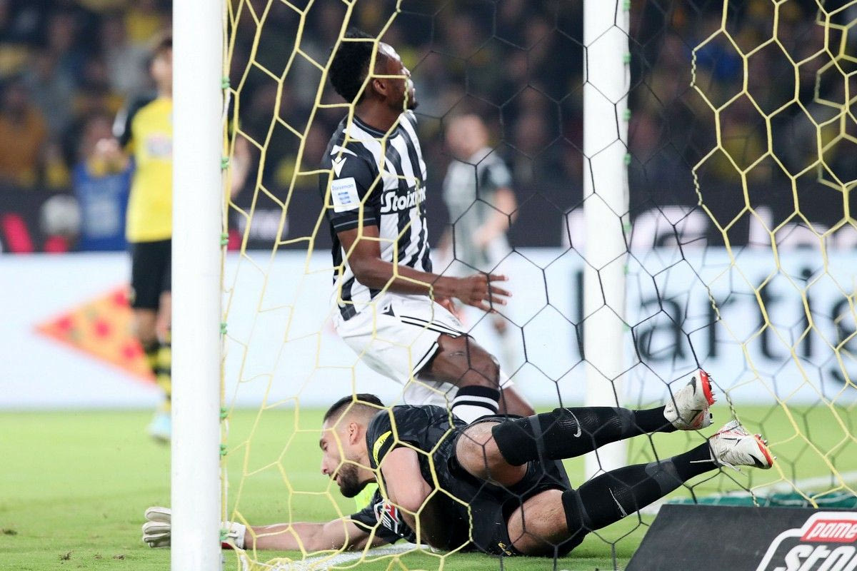 Ο ΠΑΟΚ άνοιξε το σκορ απέναντι στην ΑΕΚ στο 16ο λεπτό. Ο Ζίβκοβιτς εκτέλεσε το κόρνερ από τα αριστερά, ο Τσάλοφ πήρε την πρώτη κεφαλιά και ο Μπάμπα με προβολή την έστειλε στην εστία. Ο Στρακόσα αρχικά σταμάτησε με τα πόδια, αλλά ο Γκανέζος μπακ τσίμπησε την μπάλα και την έστειλε στα δίχτυα.