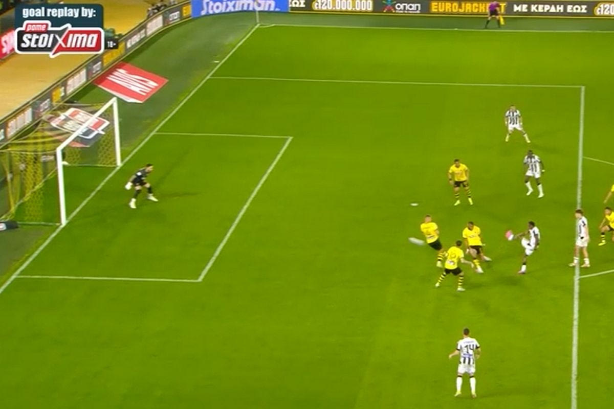 Συγκεκριμένα στο 62ο λεπτό, με τον Ντεσπόντοφ να μπαίνει αρχικά από τα δεξιά μέσα στην περιοχή και να εκτελεί από πλάγια θέση, αλλά ο Αθανασιάδης να τον σταματάει.