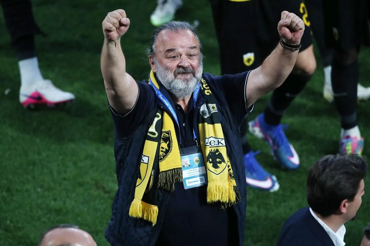 Εν συνεχεία πανηγύρισε με την ψυχή του το τρίποντο της ΑΕΚ, υψώνοντας το κιτρινόμαυρο πανό του.