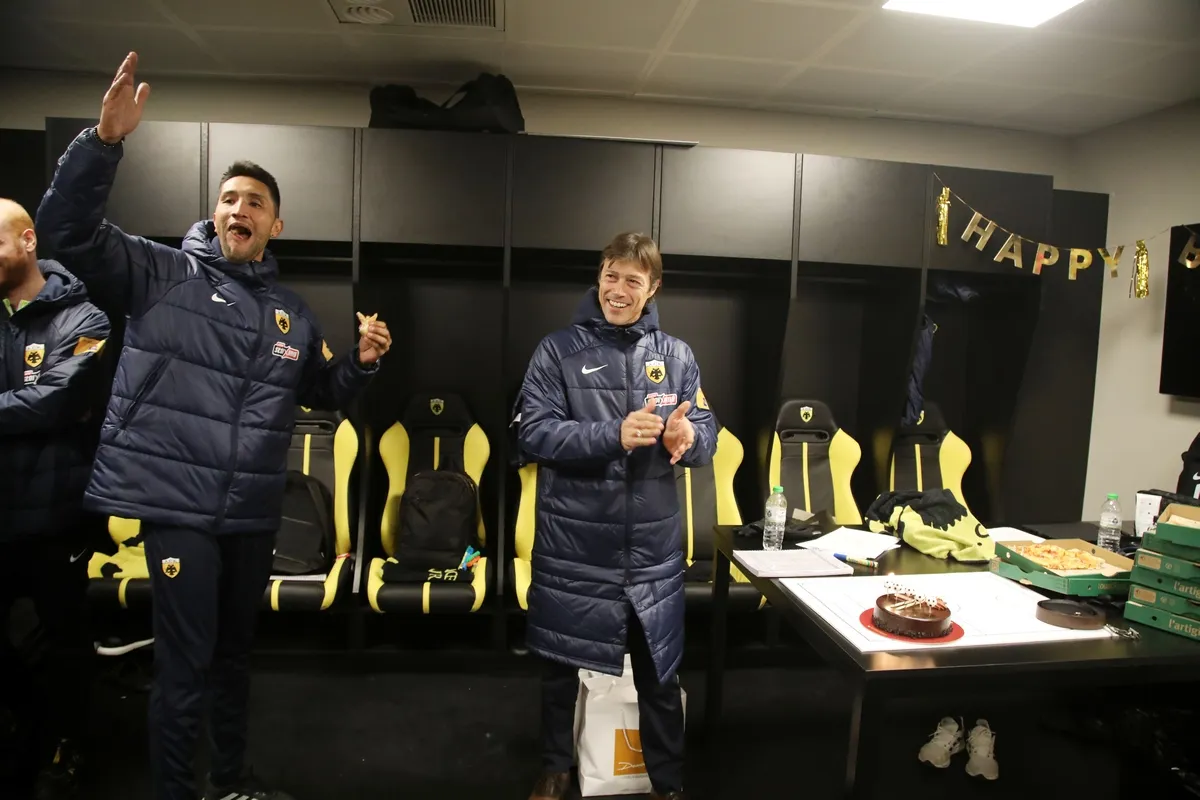 Οι παίκτες της ΑΕΚ έκαναν το δώρο τους εντός αγωνιστικού χώρου στον Ματίας Αλμέιδα για τα γενέθλια του την Τετάρτη (21/12) με τον Αργεντινό τεχνικό να γίνεται 49 ετών και εν συνεχεία οι άνθρωποι της ΑΕΚ είχαν στήσει πάρτι έκπληξη στα αποδυτήρια της OPAP Arena.