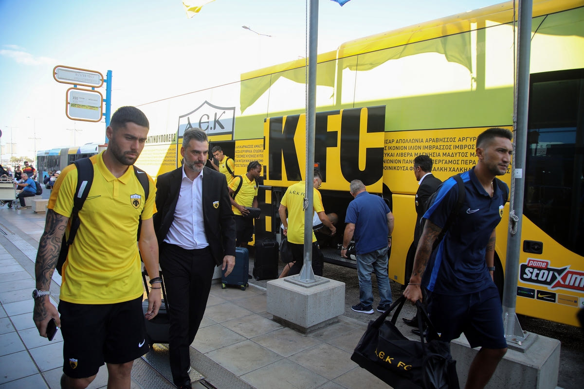 Η αποστολή της ΑΕΚ πέταξε το πρωί της Δευτέρας (21/08) για την Αμβέρσα ενόψει του πρώτου αγώνα των playoffs στο Champions League κόντρα στην Άντβερπ (22/8, 22:00, COSMOTE SPORT 7 HD και LIVE από το Match Center του SPORT24).