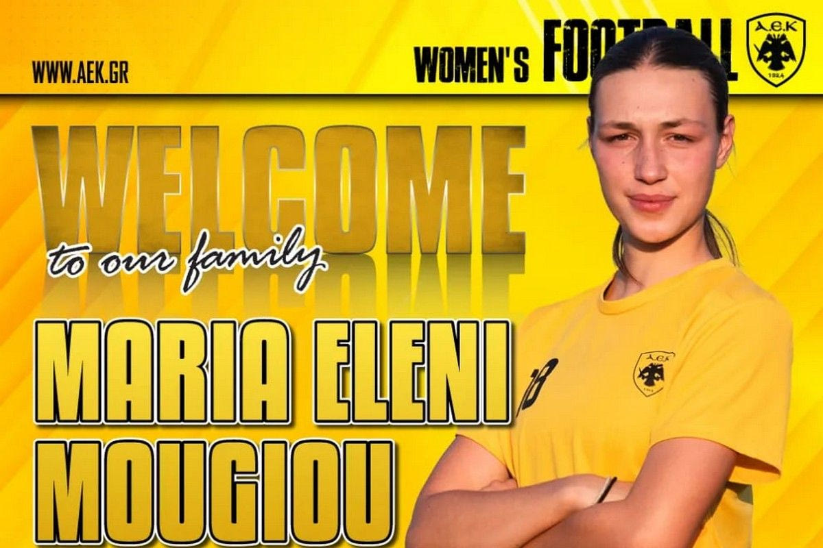 “Η ΑΕΚ βρίσκεται στην ευχάριστη θέση να ανακοινώσει την έναρξη της συνεργασίας της με την Μαρία Ελένη Μούγιου. Η 18χρονη (17/07/2007) διεθνής μέσος, εντάσσεται στο δυναμικό της γυναικείας ομάδας Ποδοσφαίρου του Συλλόγου.