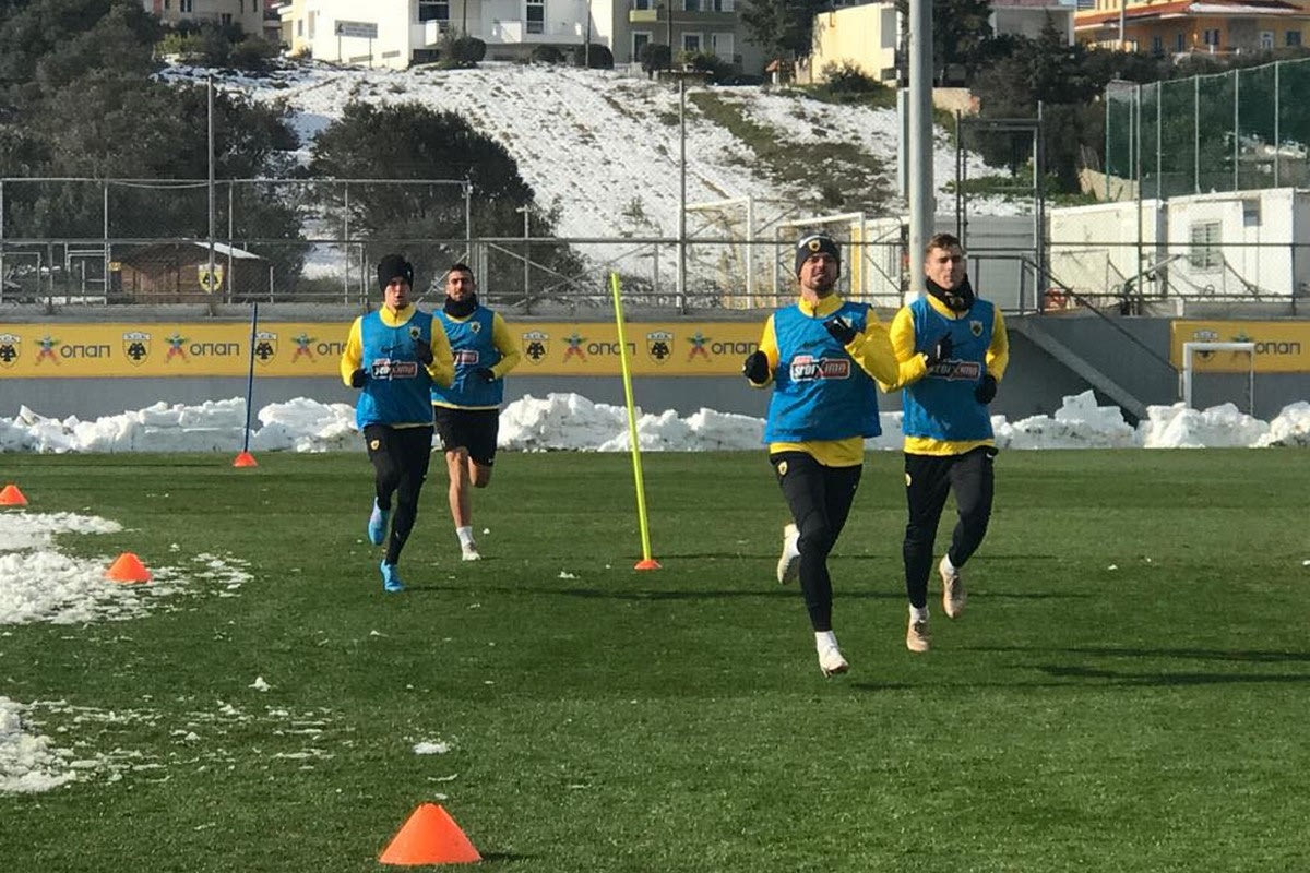 Οι παίκτες της ΑΕΚ κατάφεραν τελικά να προπονηθούν στο γήπεδο, στο προπονητικό κέντρο στα Σπάτα, καθώς οι άνθρωποι της ομάδας πρόλαβαν να "καθαρίσουν" από τα χιόνα ένα από τα γήπεδα πο διαθέτει το προπονητικό κέντρο της ομάδας. Ο Τσιντώτας ακολούθησε ατομικό πρόγραμμα.