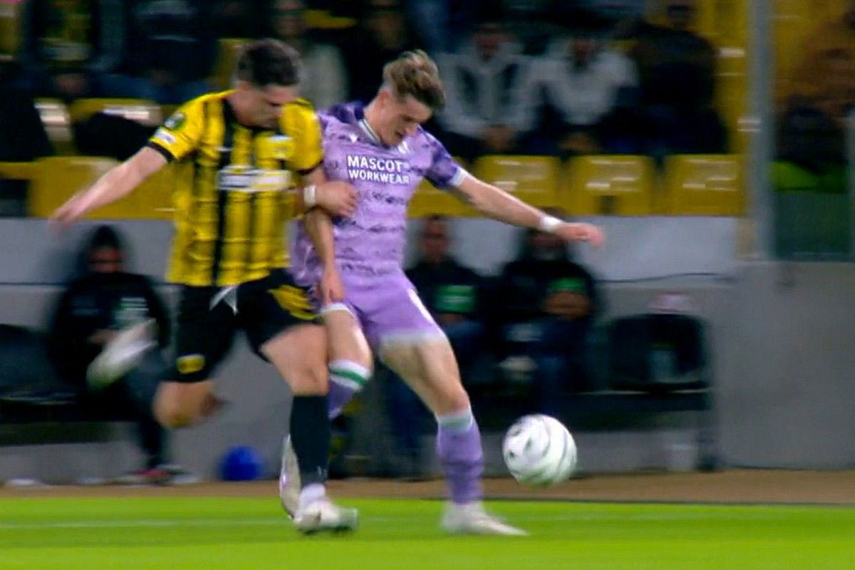 Ο VAR τον κάλεσε να διορθώσει την απόφασή του, ωστόσο ο διαιτητής δεν την άλλαξε, με τους Ιρλανδούς εν τέλει να ευστοχούν και να παίρνουν “κεφάλι” στο σκορ. Έξαλλοι οι παίκτες της ΑΕΚ, με τον Μάνταλο να τραβάει τα μαλλιά του.