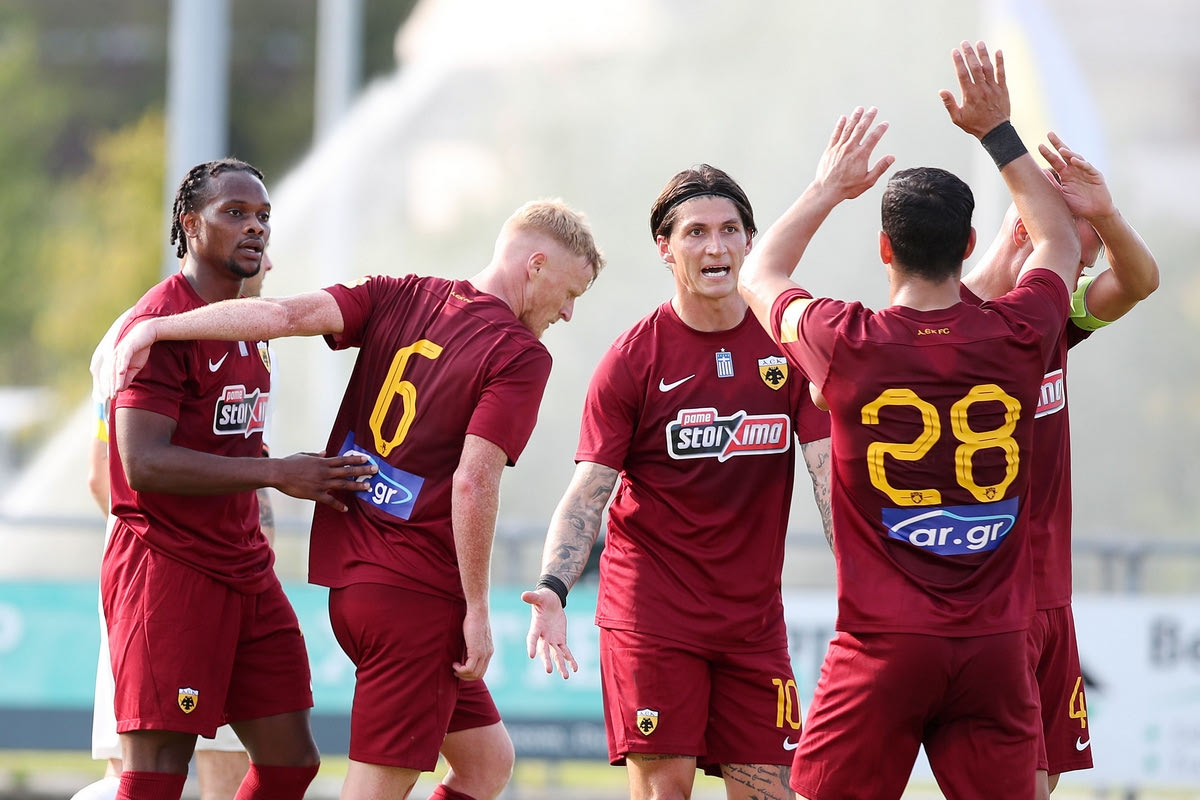 ΑΕΚ ΑΕΚ – Σαχτάρ: Τα highlights της φιλικής νίκης της Ένωσης ΚΩΣΤΑΣ ΜΠΡΑΤΣΟΣ 13.07.2023 21:18 Οι παίκτες ης ΑΕΚ πανηγυρίζουν γκολ που σημείωσαν στη φιλική αναμέτρηση με τη Σαχτάρ | Πέμπτη 13 Ιουλίου 2023 Νίκος Βήχος/INTIME SPORTS Η ΑΕΚ επιβλήθηκε με άνεση στο τελευταίο φιλικό της επί ολλανδικού εδάφους κόντρα στη Σαχτάρ, με σκορ 5-0. share this on facebook share this on twitter share this on messenger share this on messenger Η ΑΕΚ διέλυσε τη Σαχτάρ με 5-0 στην τελευταία φιλική αναμέτρησή της στην Ολλανδία, με τον Λιβάι Γκαρσία να σημειώνει χατ τρικ και τον Ζίνι να μπαίνει αλλαγή και να πετυχαίνει άλλα δύο γκολ. Δείτε τα highlights