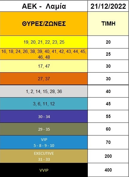 Η ΠΑΕ ΑΕΚ ανακοίνωσε ότι τέθηκαν σε κυκλοφορία τα εισιτήρια για το παιχνίδι με τη Λαμία στις 22 Δεκεμβρίου στην OPAP Arena για τη 14η αγωνιστική της Super League. Η πώλησή τους θα γίνει ηλεκτρονικά, ενώ τα φθηνότερα ξεκινούν από 20 ευρώ.