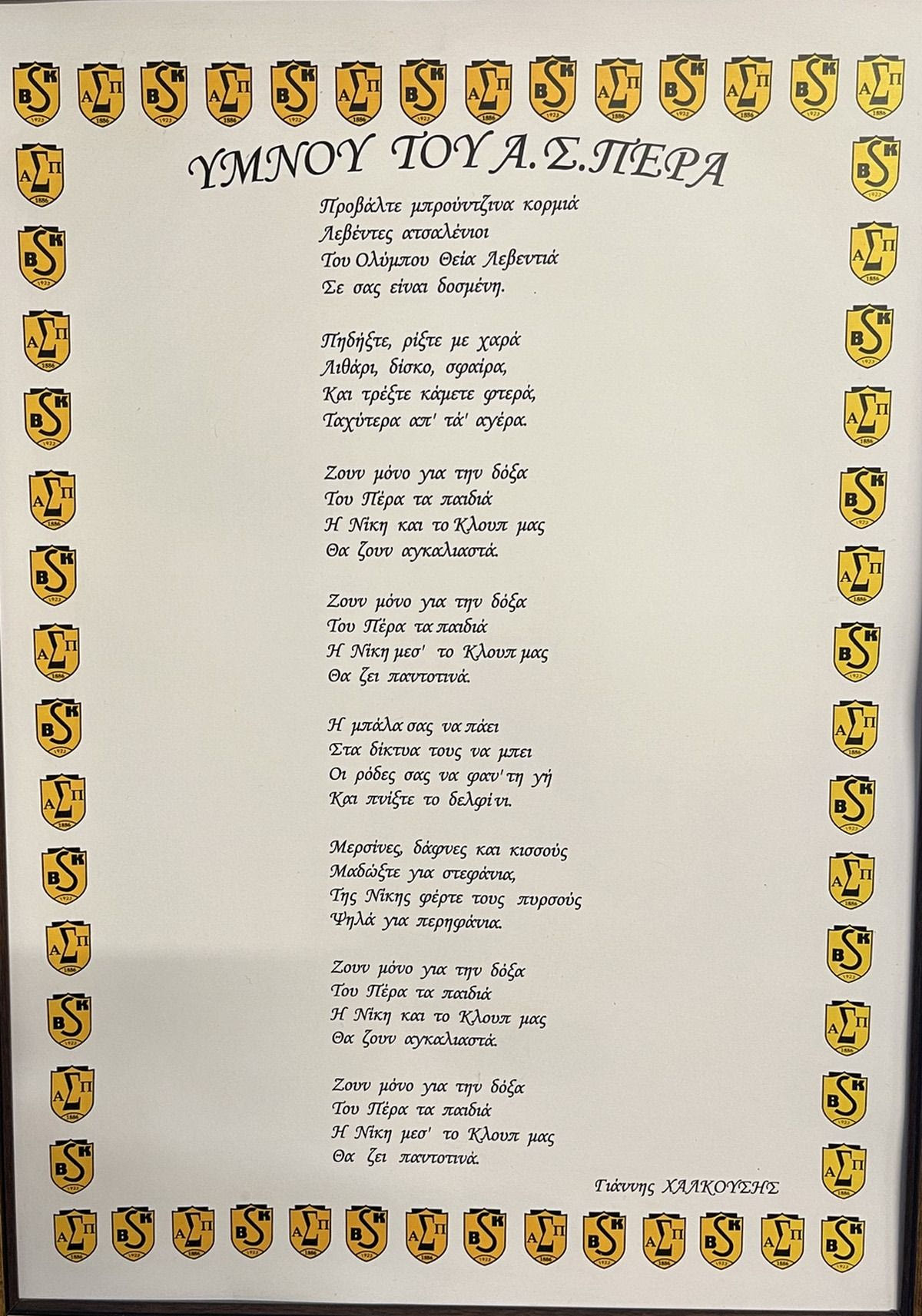 Έτσι μας γνώρισε το κοινό και εμείς γνωρίσαμε κόσμο από την ΑΕΚ που μας βοήθησε, όπως η κυρία Χριστίνα Σούκερη–Παπασταμάτη, πρόεδρος της Λέσχης Ιστορίας και Πολιτισμού της ΑΕΚ. Ακόμα και φίλαθλοι άλλων ομάδων έχουν πάρει την κοινή φανέλα που βγάλαμε για τα 100 χρόνια της ΑΕΚ με τα εμβλήματα του ΑΣ Πέρα και της Ένωσης, προκειμένου να μας στηρίξουν καθαρά για το ελληνικό σωματείο. Δεν τους χώρισαν οι διαφορετικές ομάδες, τους ένωσαν η πατρίδα και το Πέρα”.