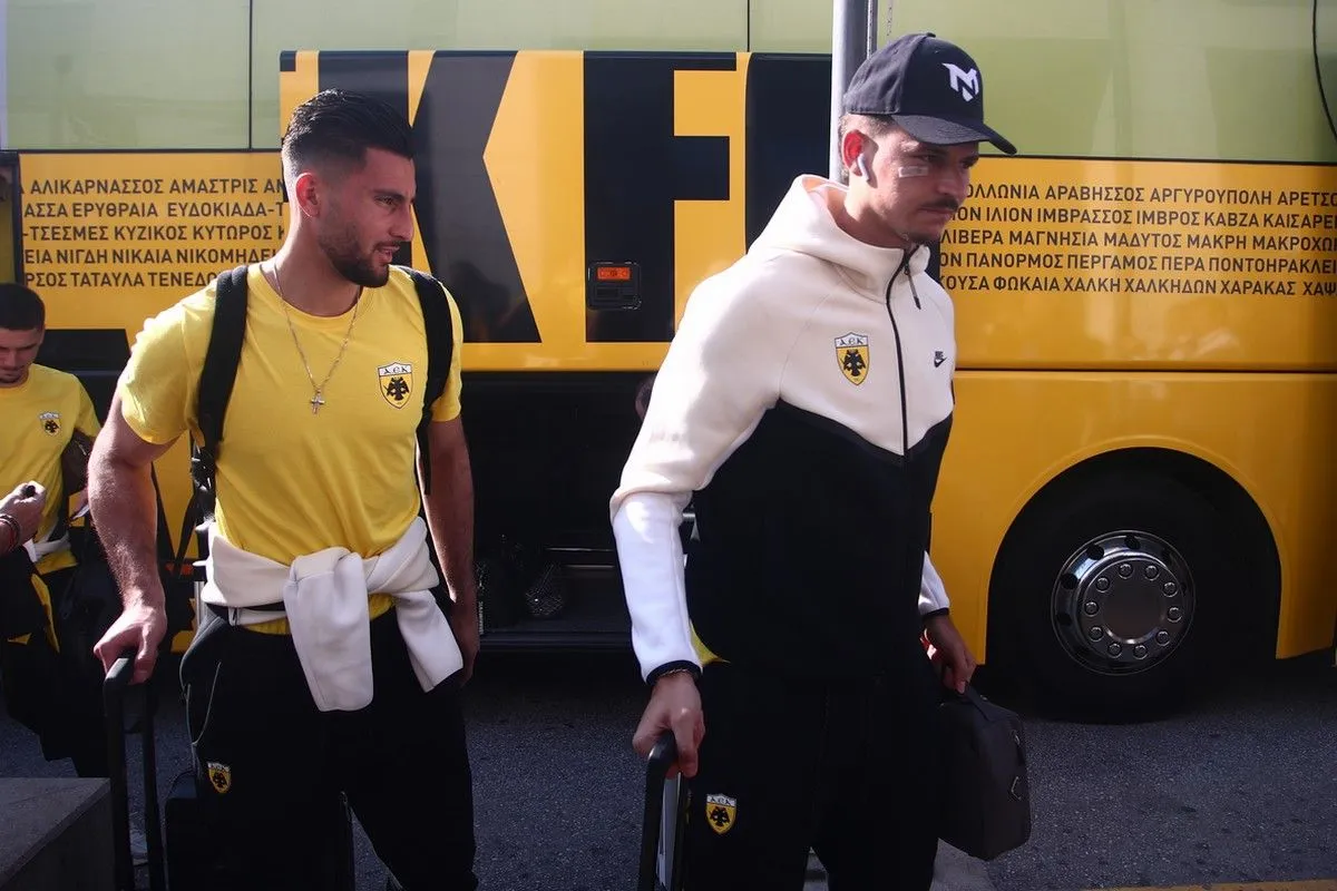 Λίγο μετά τις 18:00 της Μεγάλης Τρίτης (07/04), η αποστολή της ΑΕΚ αναχώρησε για τη Μαδρίτη, όπου το βράδυ της Πέμπτης (09/04, 19:45) θα αντιμετωπίσει τη Ράγιο Βαγιεκάνο στο πρώτο μεταξύ τους ματς για τα προημιτελικά του Conference League.